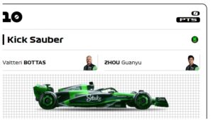 Stake F1 Team Kick Sauberのスポンサー企業一覧です。こちら、古くから三菱電機さんとの契約が続いております。一方でタイトルスポンサーはライブストリーミングやスポーツベットの会社で今風といった感じ。アルファロメオ時代がすでに懐かしいですね。